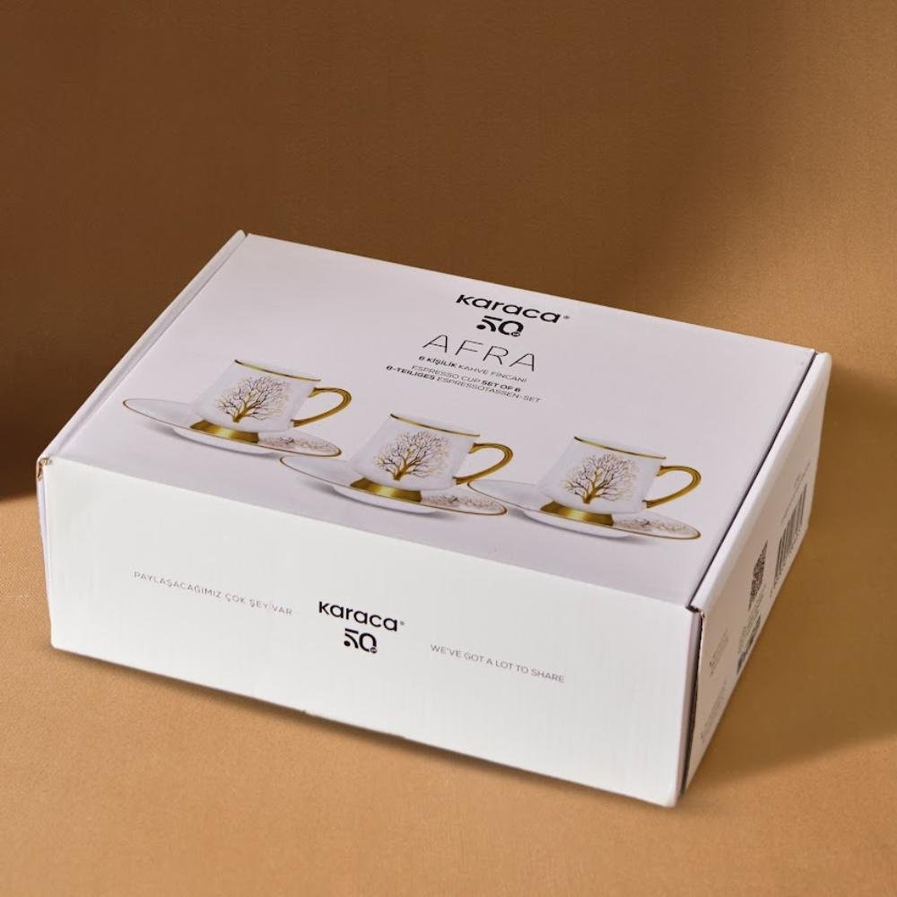 Karaca Afra 6-Piece Coffee Cup Set - 90 ml | Bone Porcelain Espresso Set, 153.09.01.3648