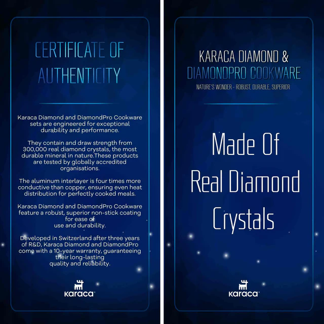 Made from the most durable minerals in nature, BioDiamond is covered with diamond crystals. Handles coated with silver nanoparticles, developed with the Antibacterial Silver Nano-Tech Handle technology, keep their antibacterial properties for many years. They are ultra-durable and resistant to scratches. Non-stick surface allow you can cook meat, fish, eggs, and vegetables healthily without using oil.