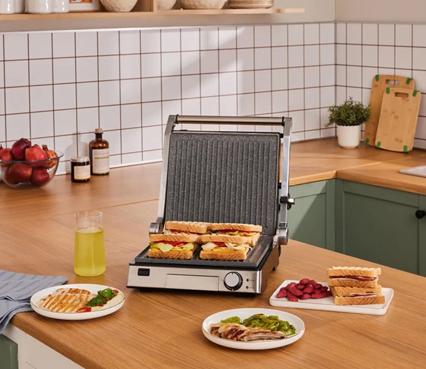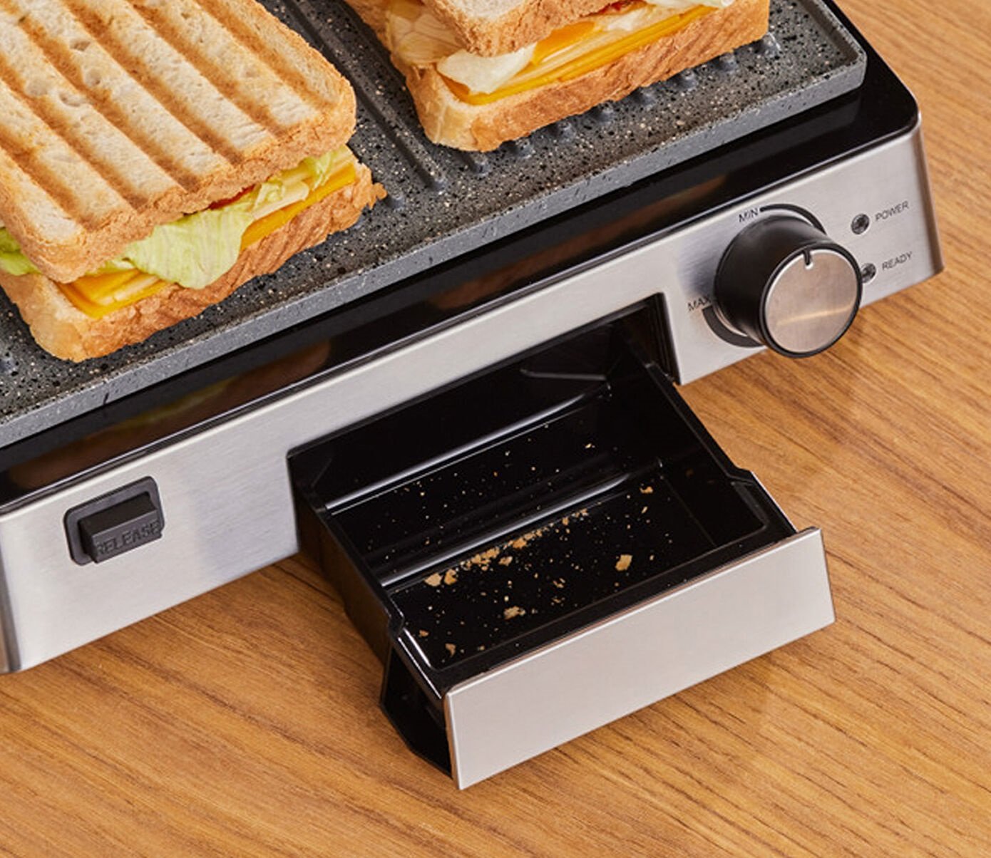 - Easy to Clean: Non-stick plates and grease tray ensure hygienic use; dishwasher safe.