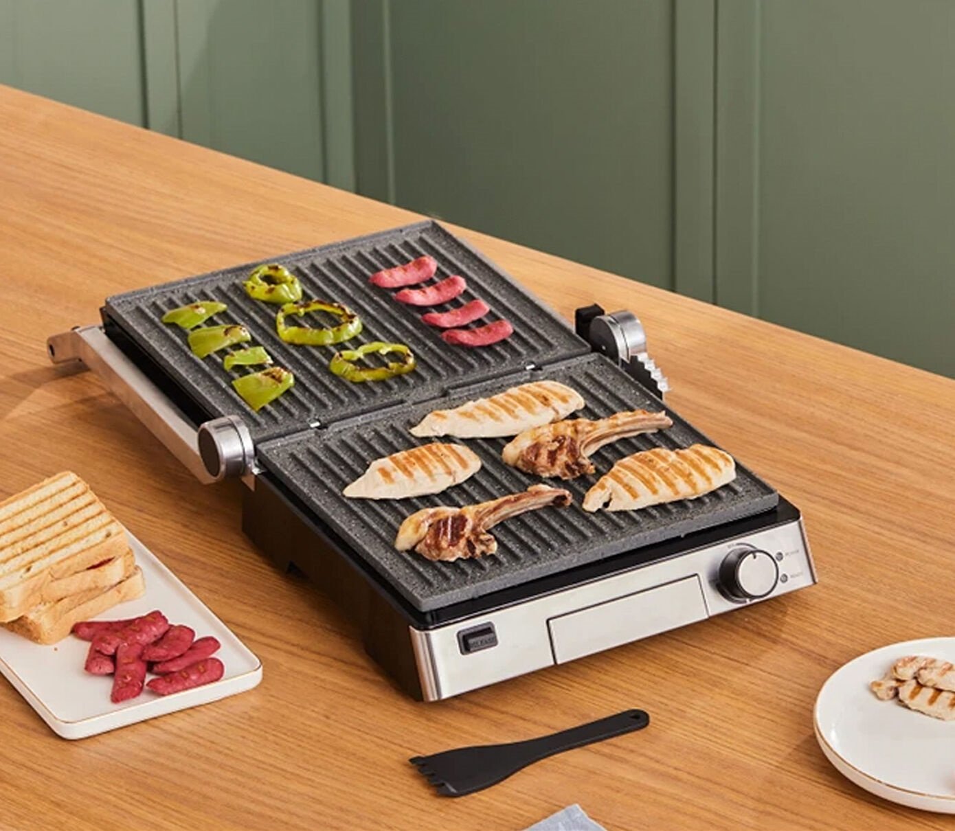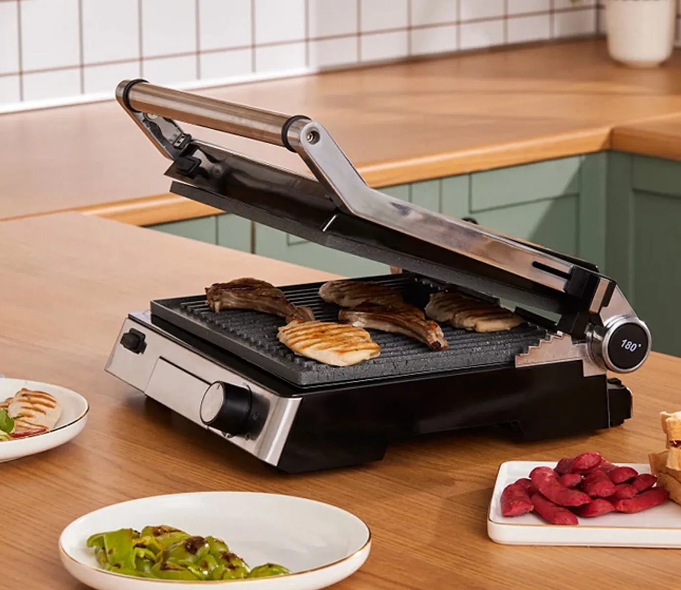 - Multifunctional Use: Top lid opens 180° for grilling meats, vegetables, and cheese.