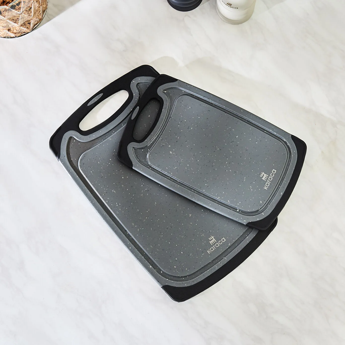 Karaca Daily Granite Patterned 2-Piece Gray Cutting Board Set, 153.03.09.0040