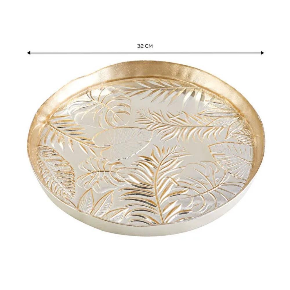 Karaca Glass Decorative Tray 32 cm | Gold Leaf Pattern
