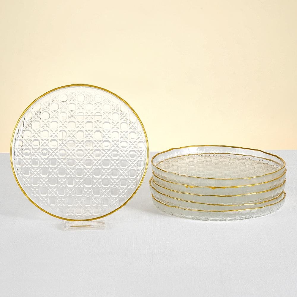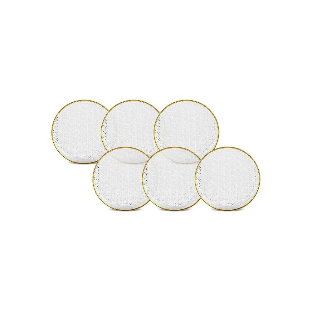 Karaca Hazeran 6-Piece Glass Cake Plate Set – Gold Rim