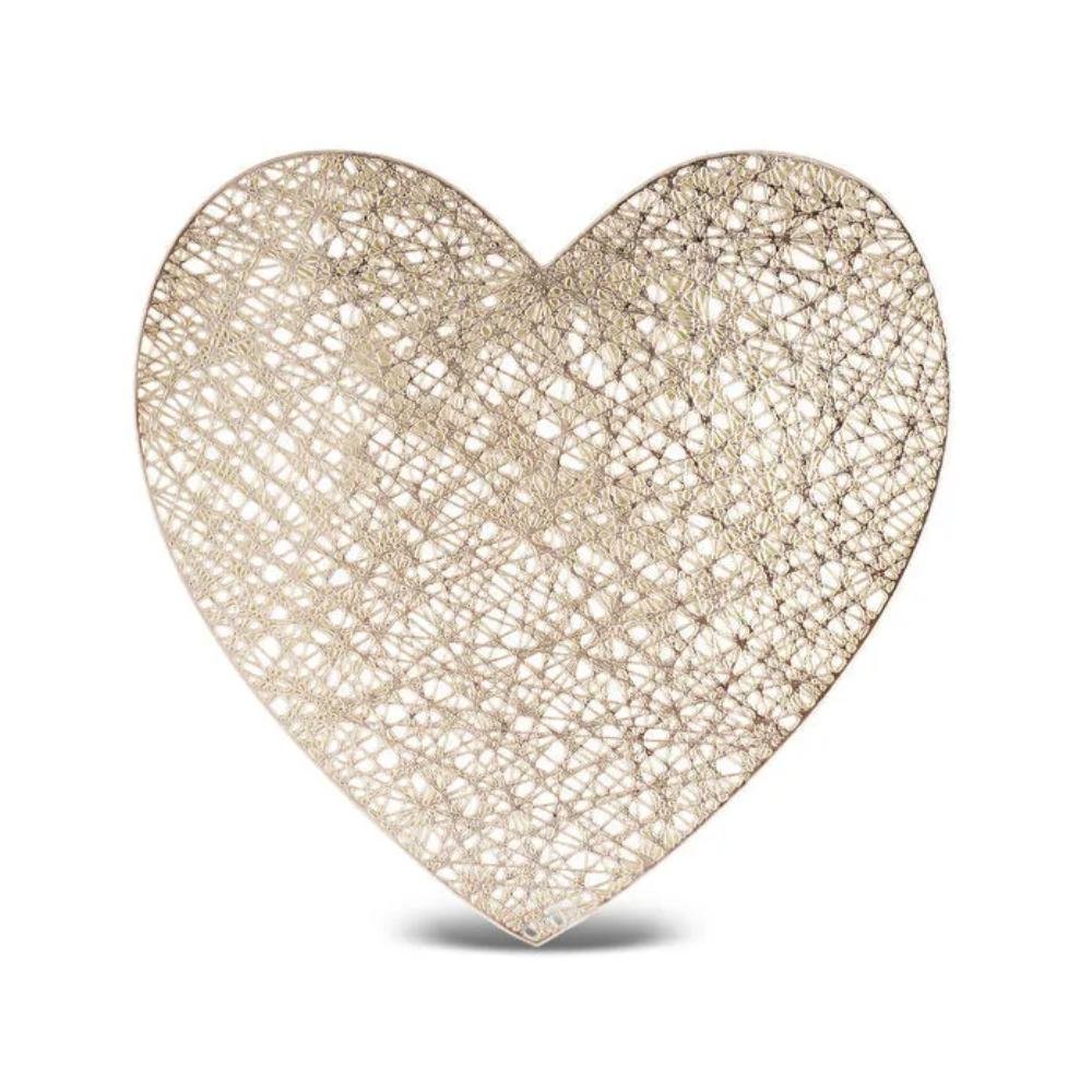 A stylish and elegant placemat set designed in a unique heart shape with a refined gold finish. It enhances any table setting with a luxurious decorative touch while providing practical surface protection for everyday dining and special occasions.