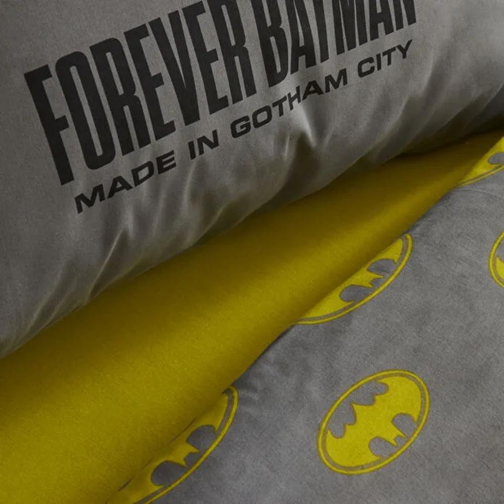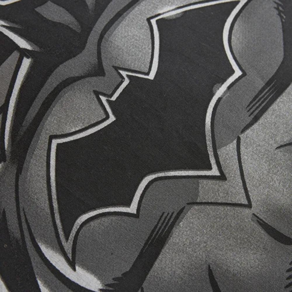It features a bold Batman Dark Knight theme in a modern grey tone for a stylish and dynamic bedroom look.