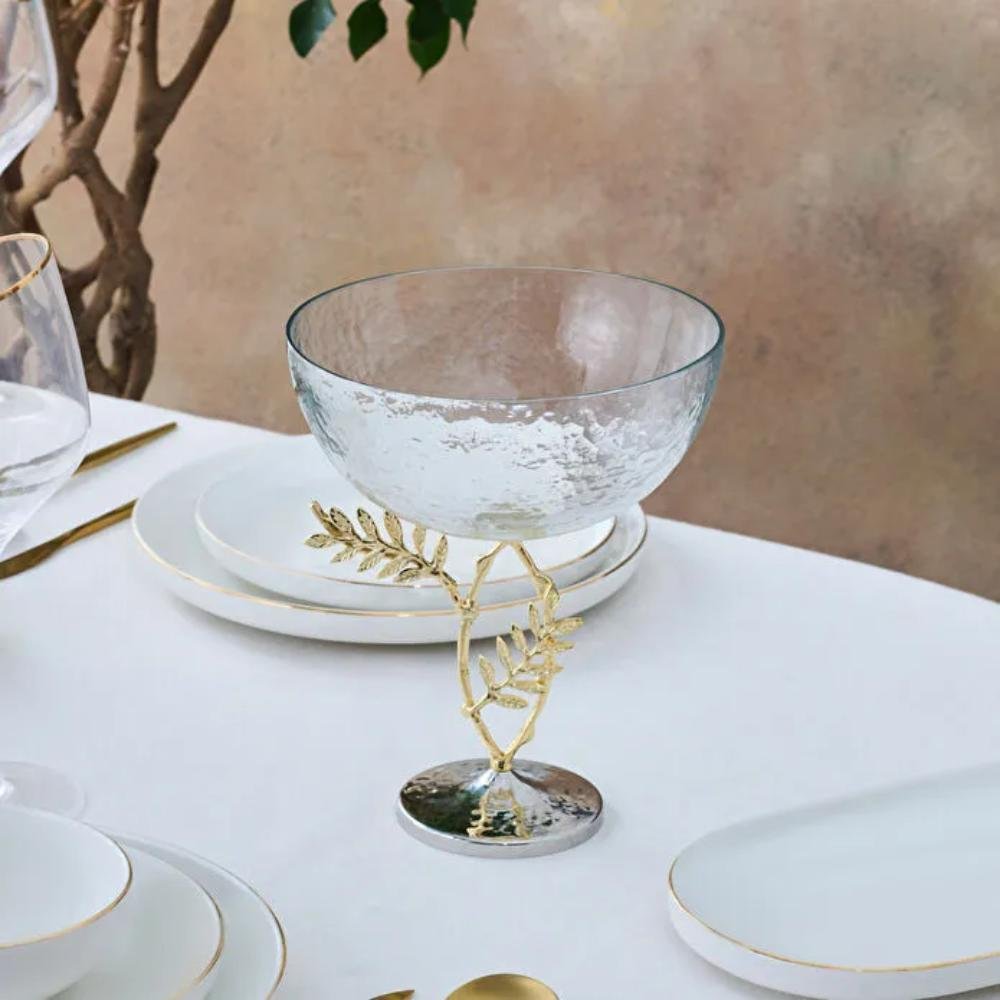 Add a luxurious festive touch to your Decor with the Karaca Home Carmenta Footed Glass Bowl. Featuring an elegant transparent glass bowl elevated on a refined metallic base, this decorative piece combines silver and gold accents to create a sophisticated and modern statement ideal for special occasions or year-round display.