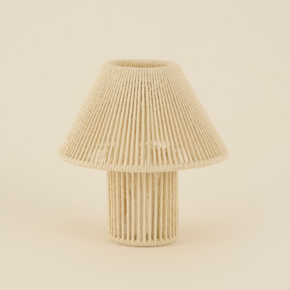 Its pyramid-shaped shade and handcrafted look enhance its decorative appeal, making it an ideal accent piece for modern, rustic, or boho interiors.