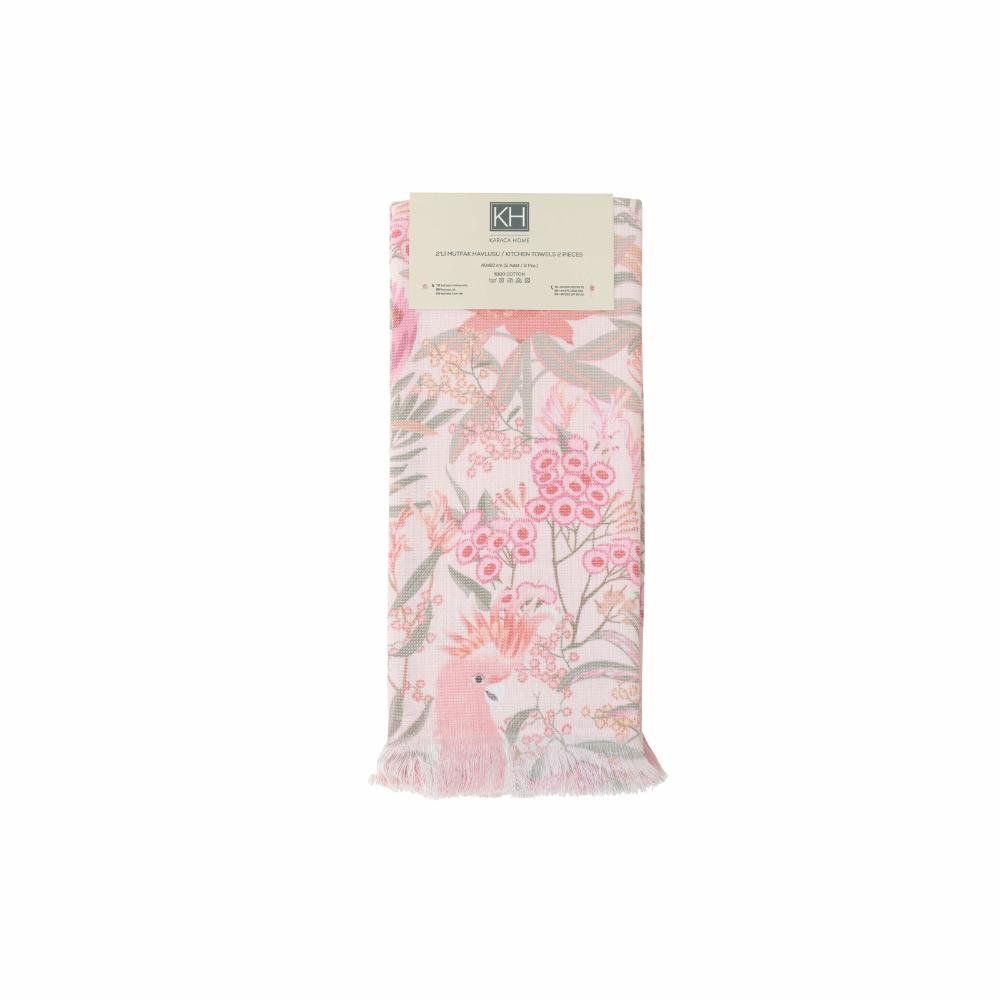 Karaca Home Floral Powder Pink 100% Cotton Kitchen 2-Piece Towel Set 60×40 cm