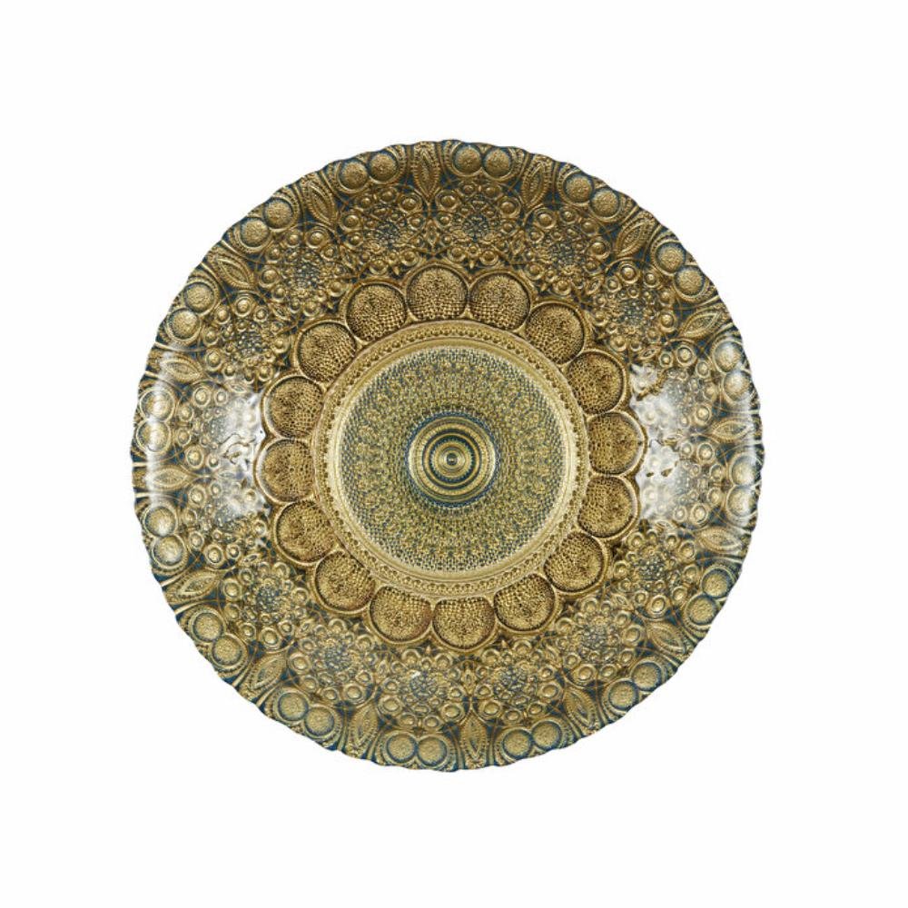 Add a touch of elegance and tradition to your Decor with the Karaca Home Jamil Decorative Plate. Crafted from premium glass, this sophisticated piece features intricate gold-patterned detailing throughout, inspired by traditional artistic designs, making it a timeless statement for any interior space.