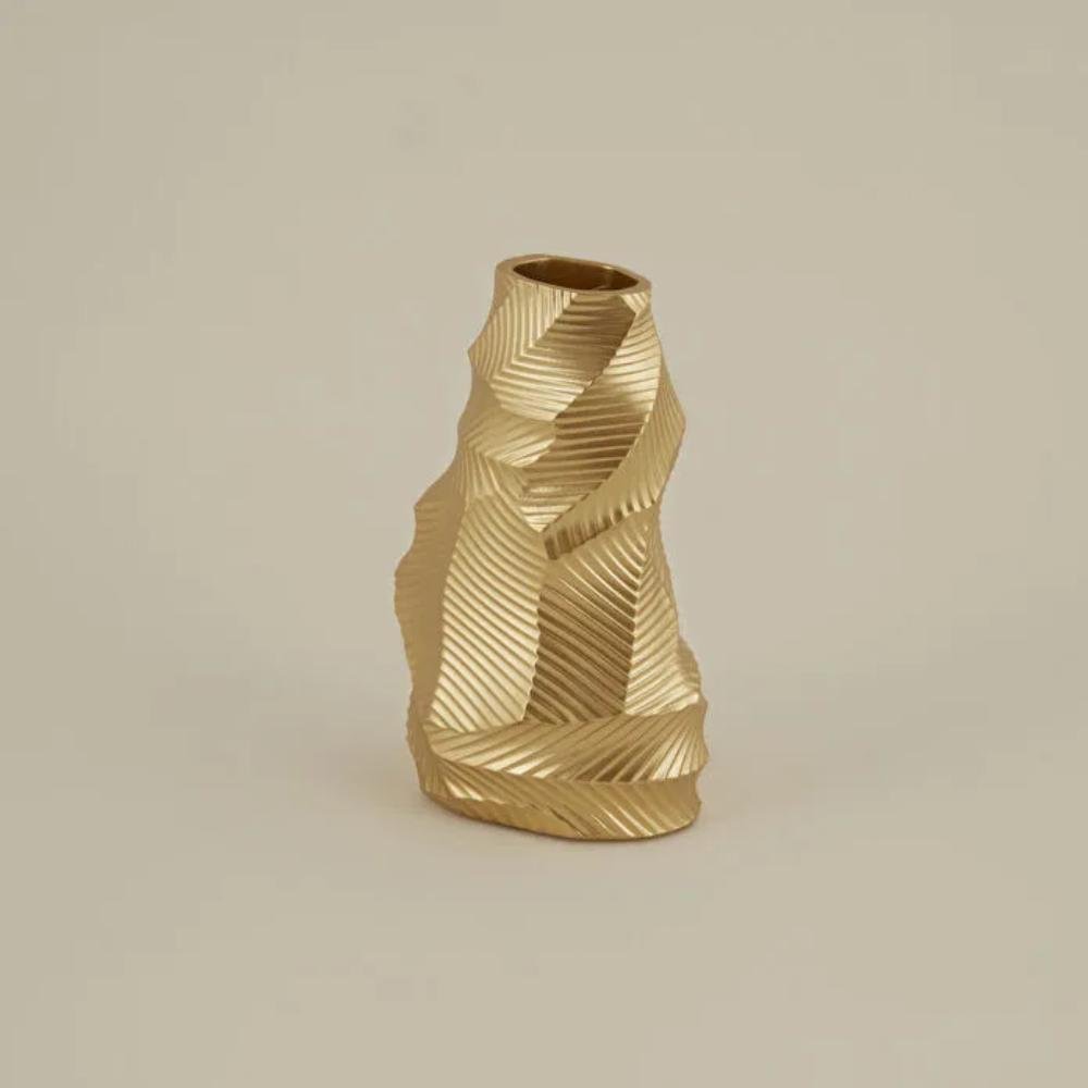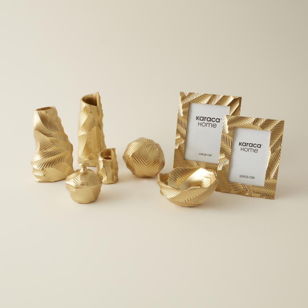 Karaca Home Lana Gold Vase – 20 cm | Textured Geometric Decorative Vase