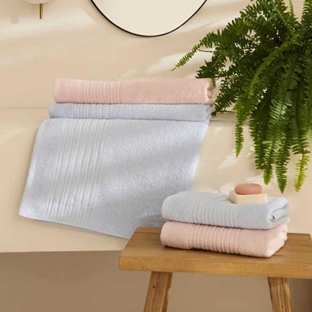 Soft and absorbent 100% cotton bath set with elegant pink and blue tones, designed for everyday comfort and durability.