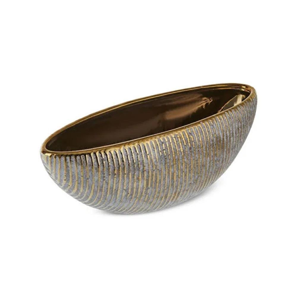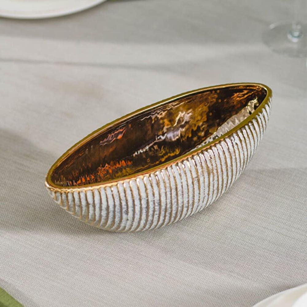 Add a sophisticated artistic touch to your interior with the Karaca Novara Gondola Decorative Bowl. Designed in an elegant boat-shaped form, this ceramic piece features a refined ribbed exterior with luxurious gold accents and a smooth gold-tone interior, making it a striking statement piece for modern home Decor.