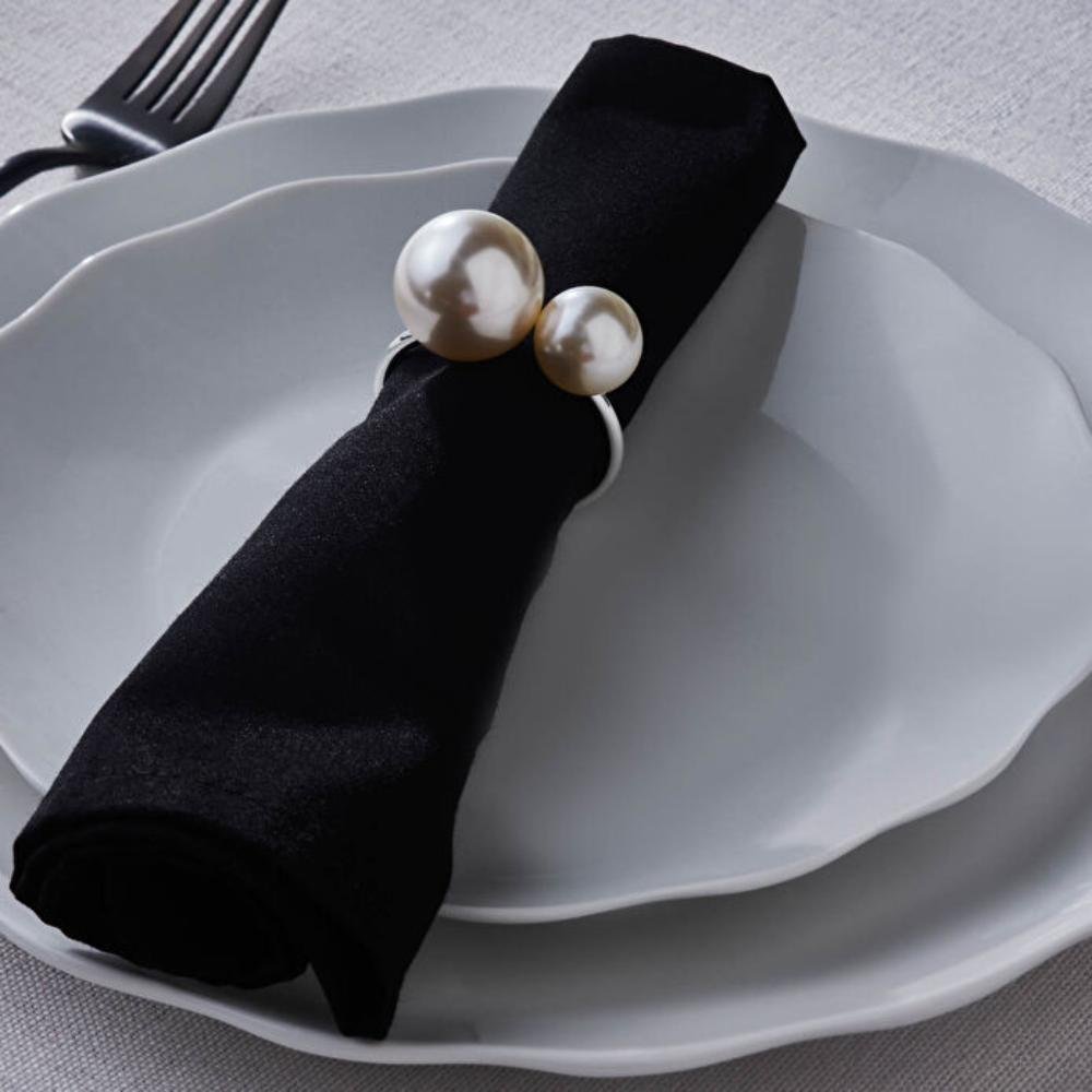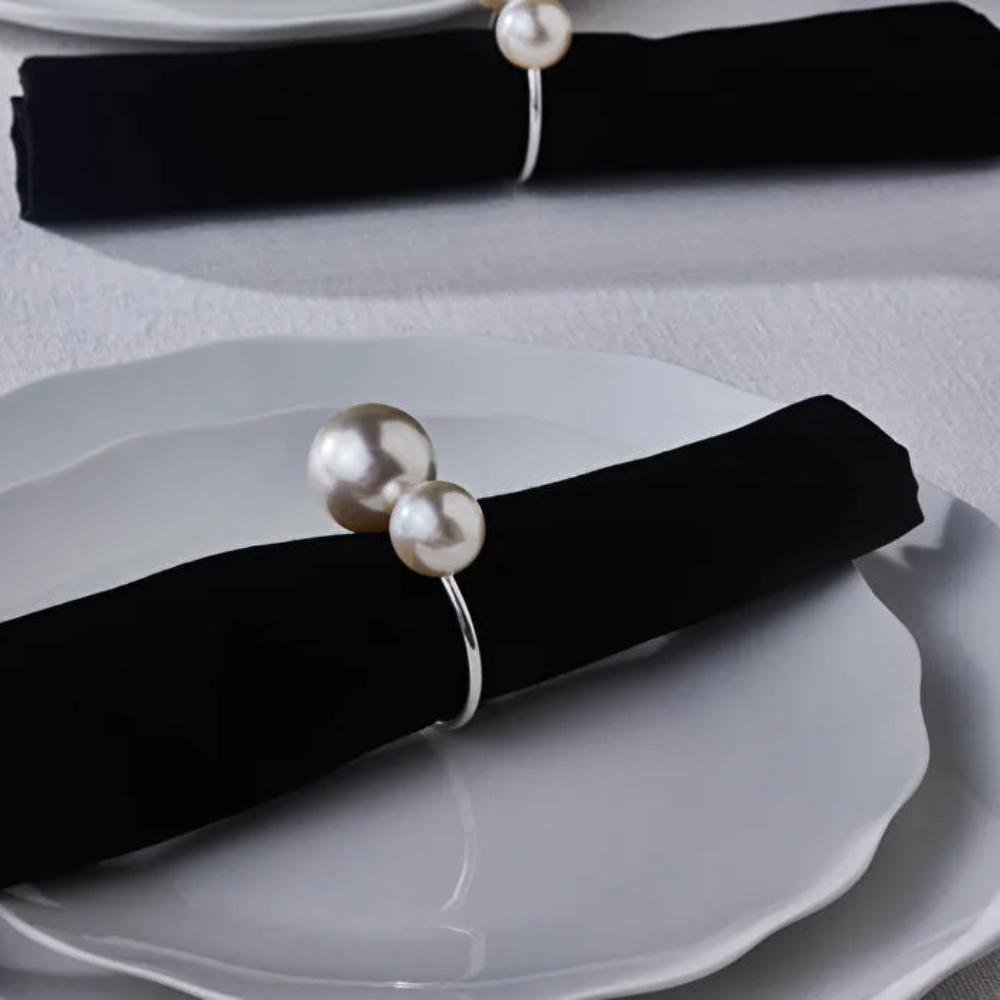 An elegant napkin ring set designed to enhance table presentation with a refined silver finish and delicate pearl accents. Crafted from high-quality metal, it adds a luxurious and sophisticated touch to any dining setup.