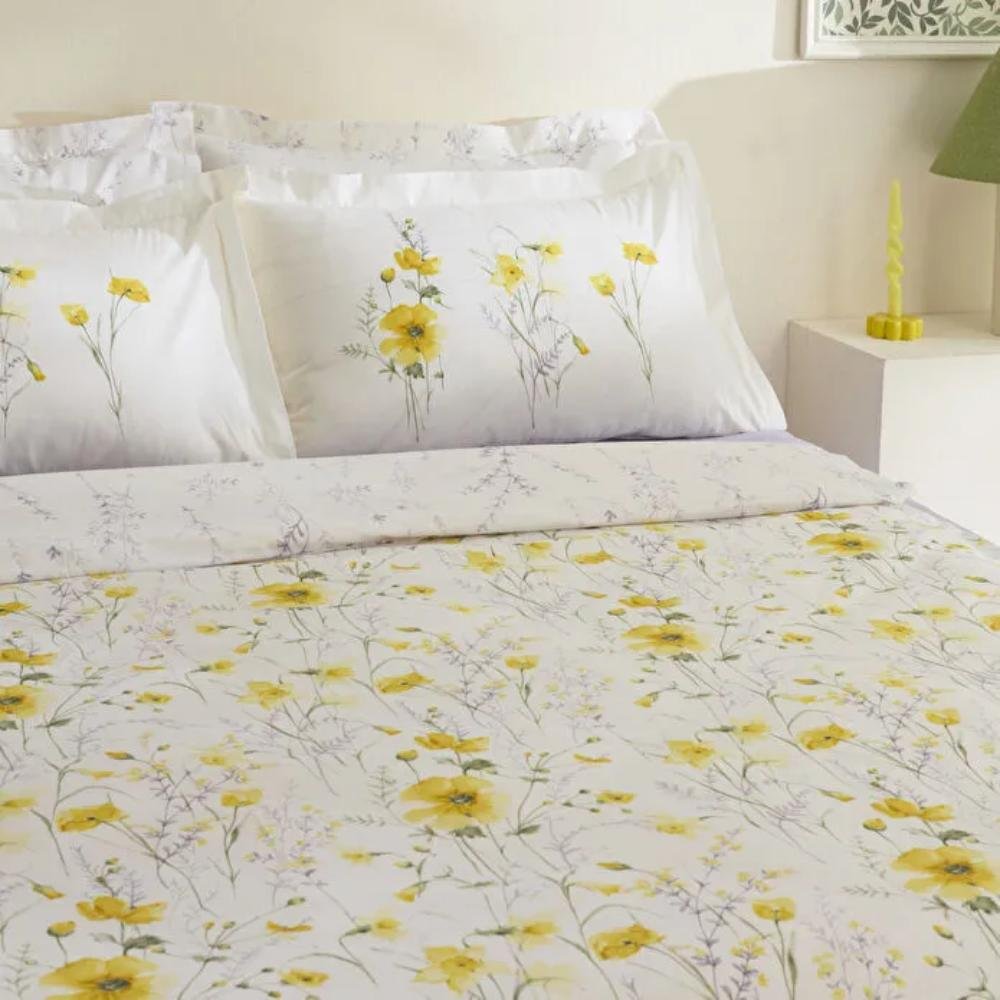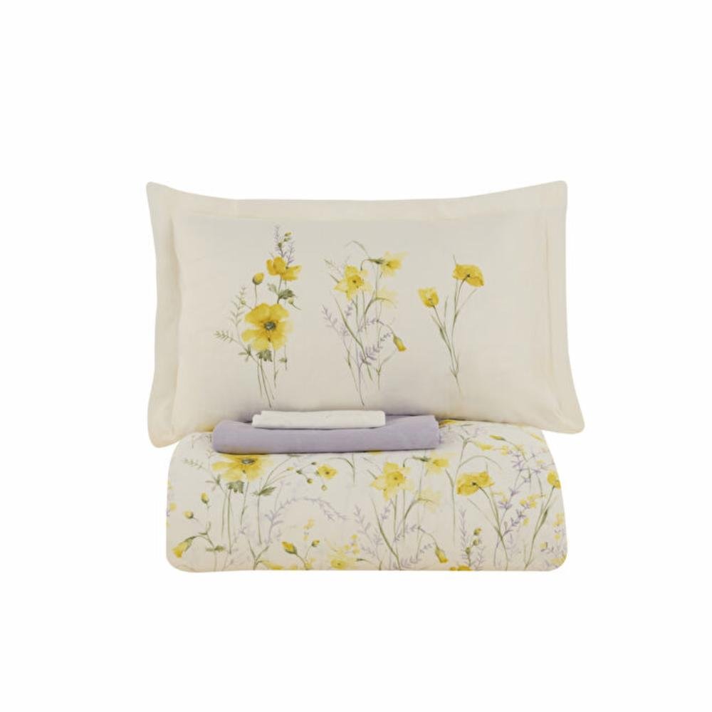Karaca Home Rosella 100% Cotton Single Duvet Cover Set 160×220 cm – White/Yellow