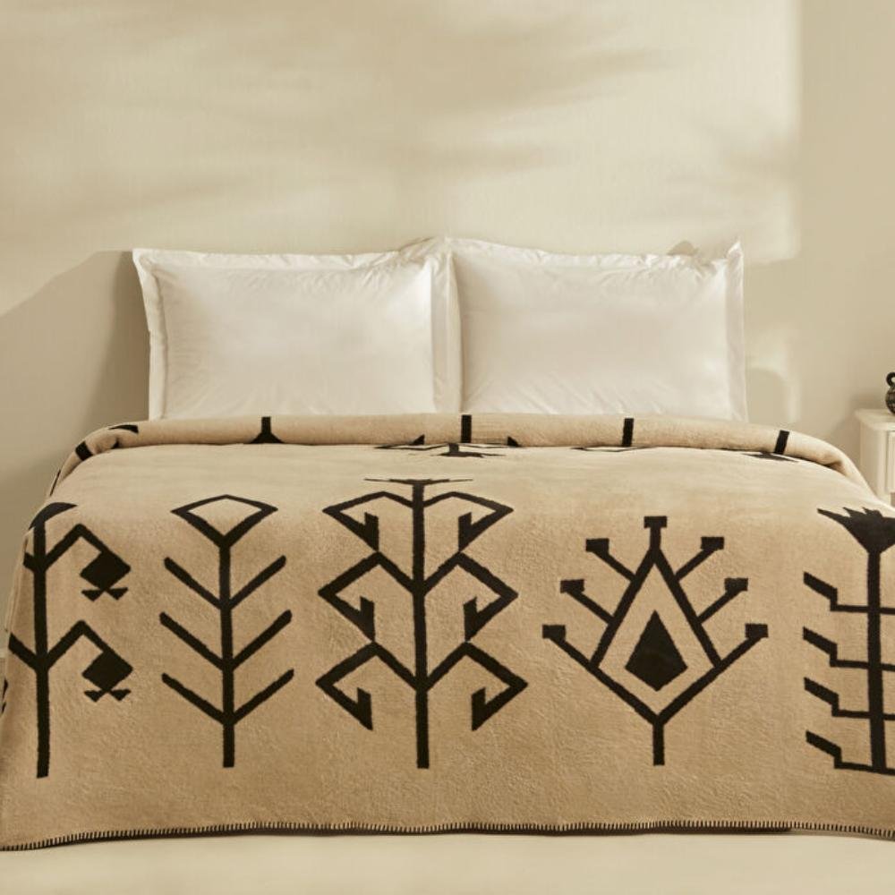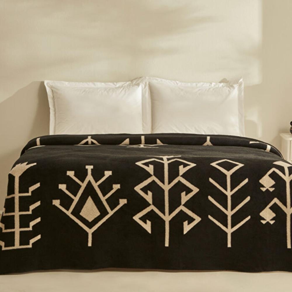 Karaca Home Sara Double Cotton Blanket 200×200 cm – Black/Beige