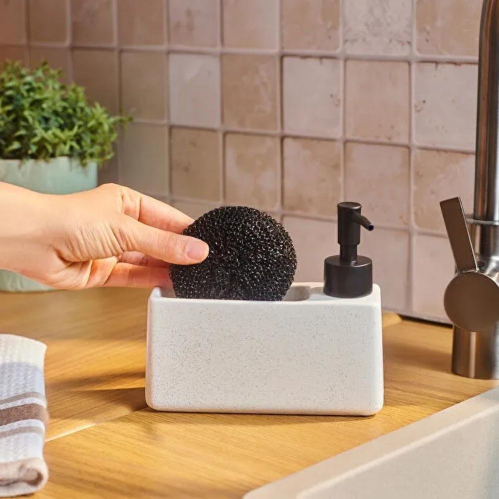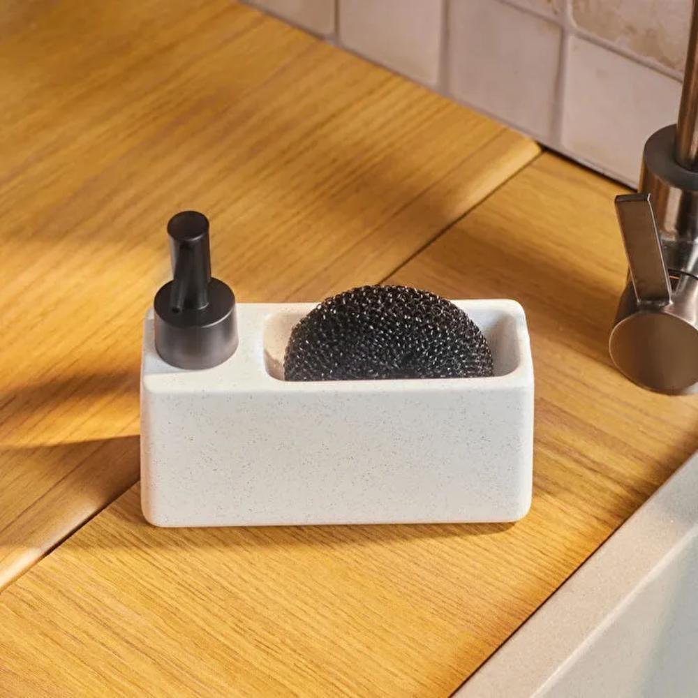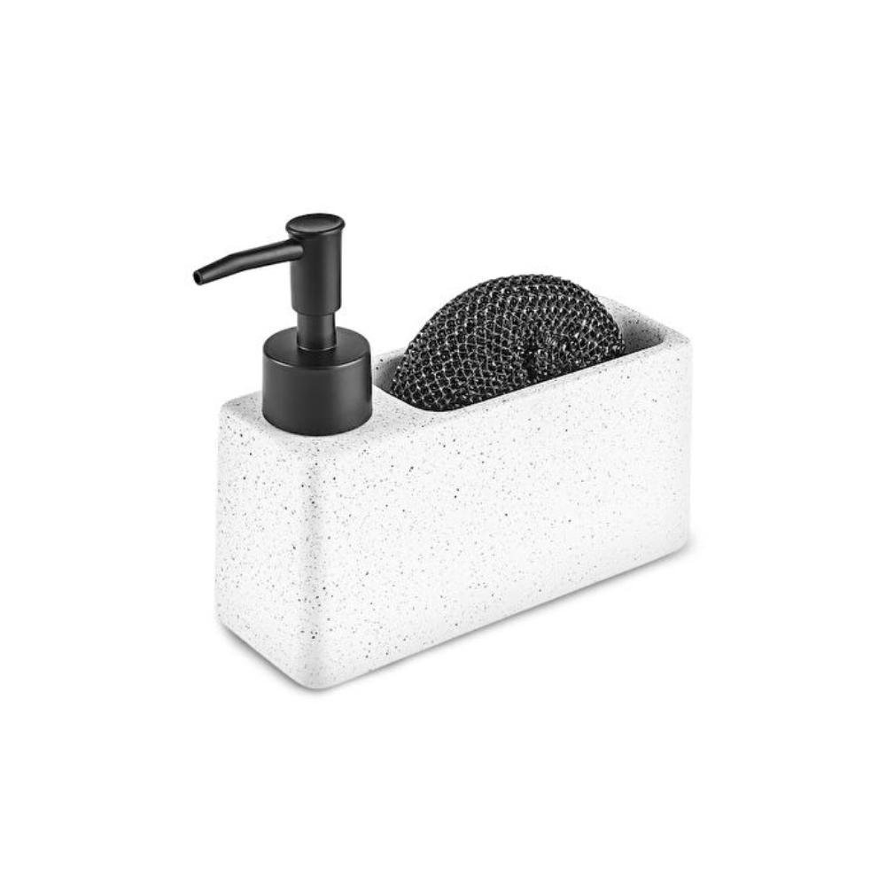 Karaca Kris 2-Piece Soap Dispenser and Sponge White Holder Set 370 ml