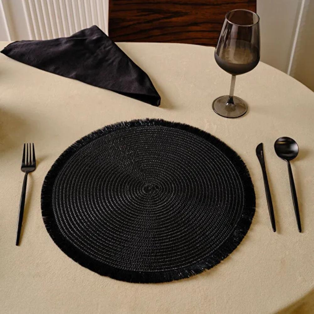 A modern and durable placemat set designed in a sleek black finish to enhance contemporary table settings. Crafted from high-quality polypropylene, it provides reliable surface protection while maintaining a refined and minimalist look.