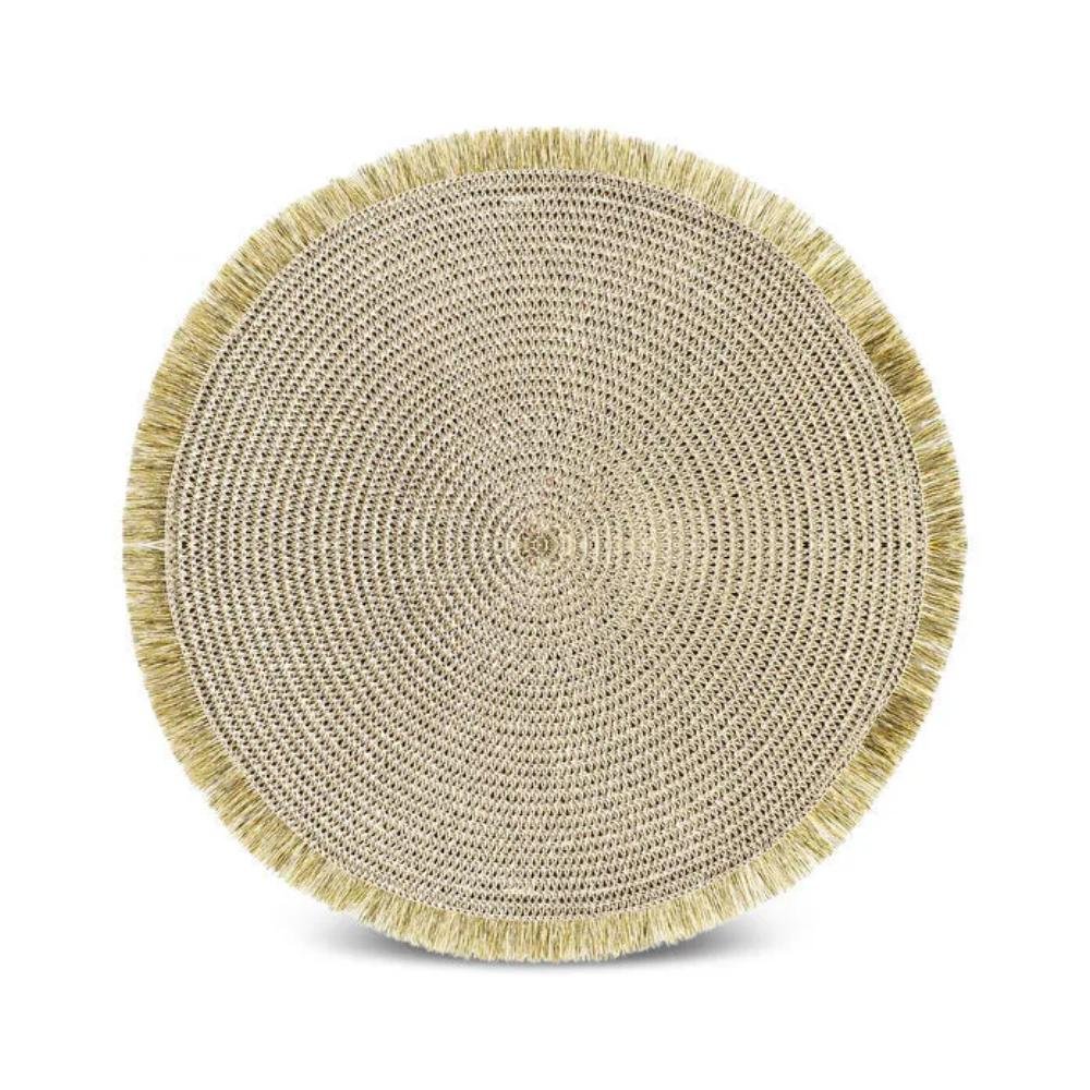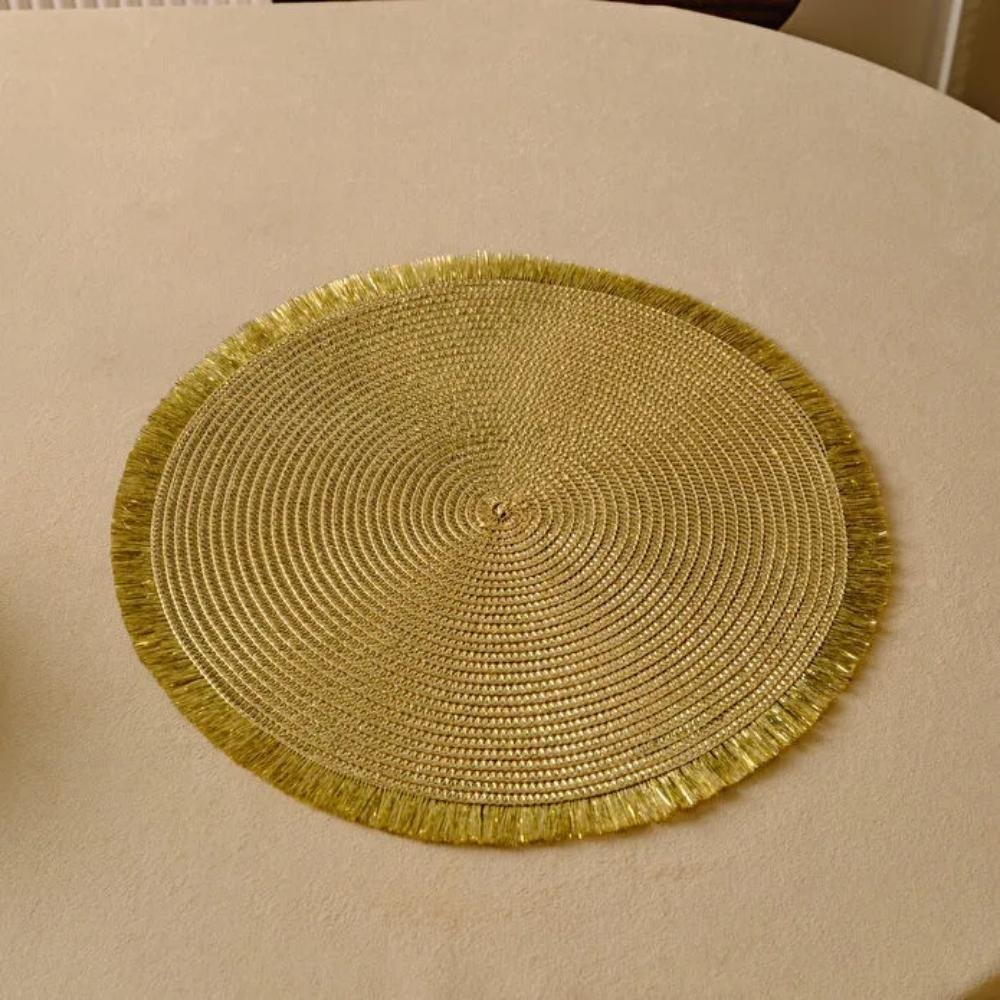 An elegant placemat set designed in a refined gold finish to elevate any table setting. Crafted from durable plastic, it combines decorative appeal with practical surface protection for everyday dining and special occasions.