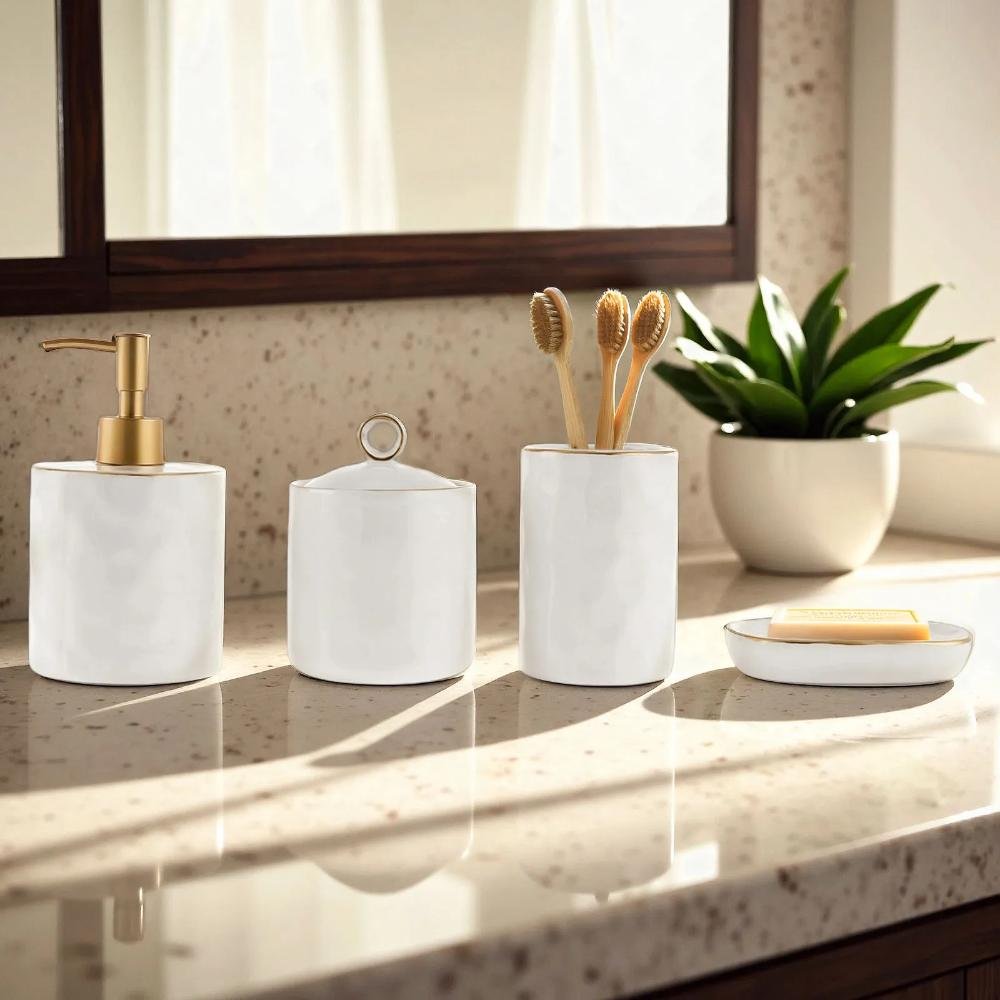 Karaca Lina 4-Piece Ceramic Bathroom Set – Elegant Organizer Set