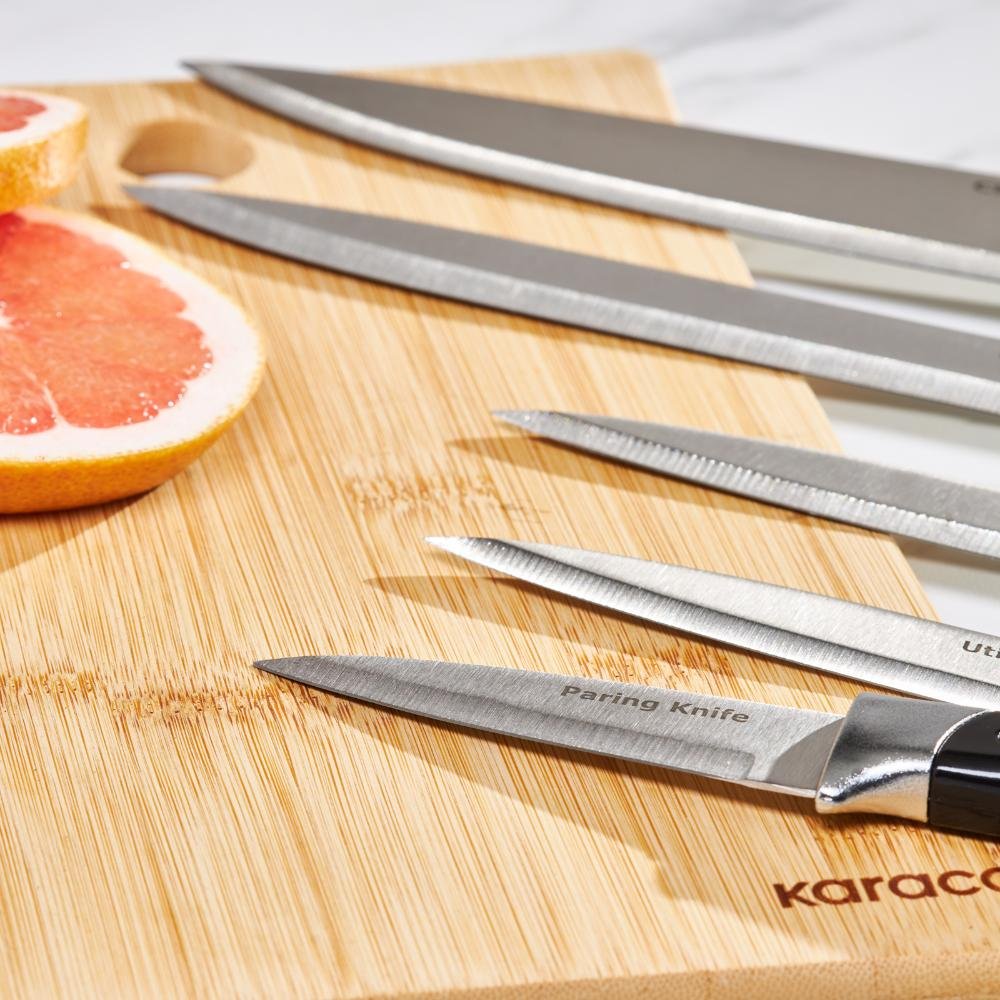 Karaca Mastermaid 6-Piece Knife Set with Stand - Black | Performer Steel Kitchen Knives, 153.09.01.5222