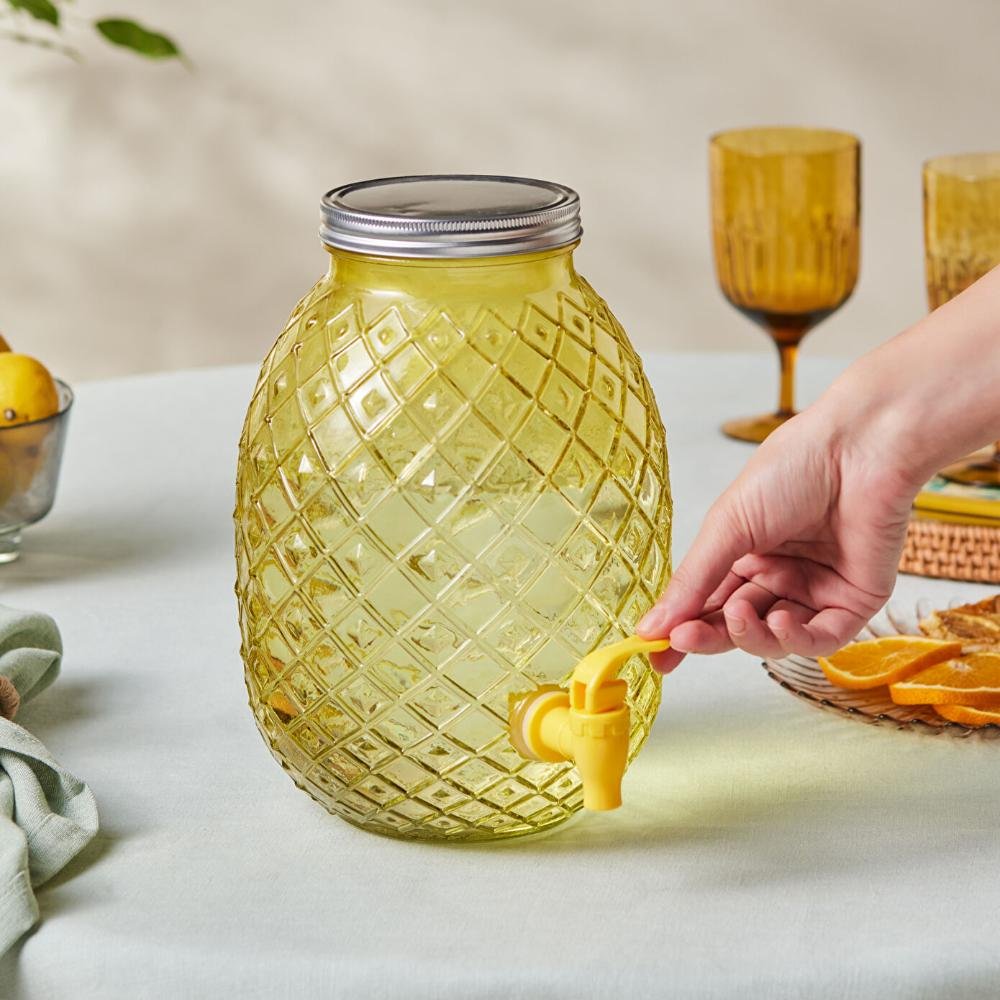 Karaca Melon Glass Dispenser with Faucet Lid Carboy 4650 ml – Yellow, 153.09.01.7138