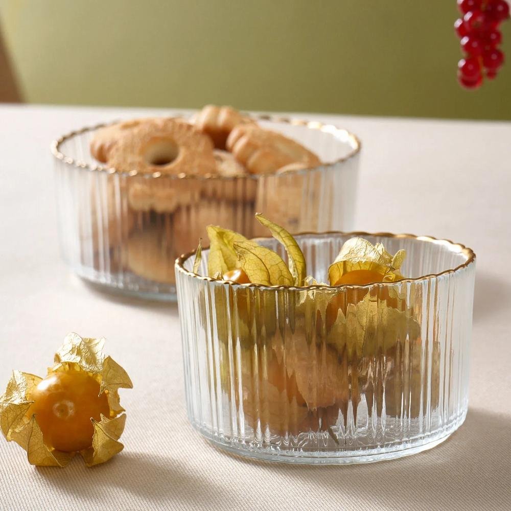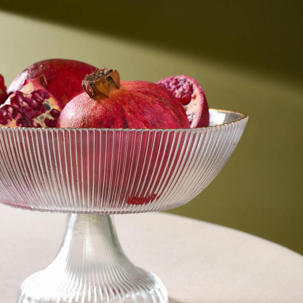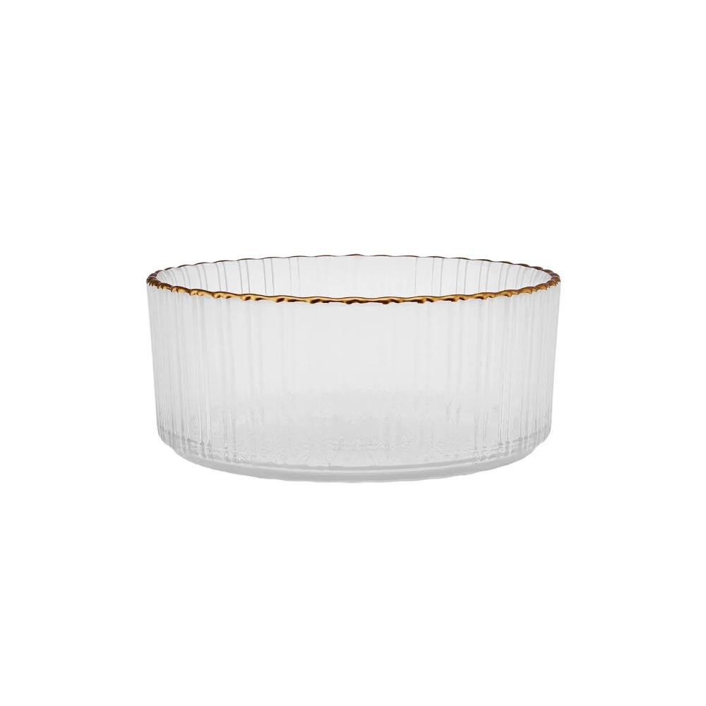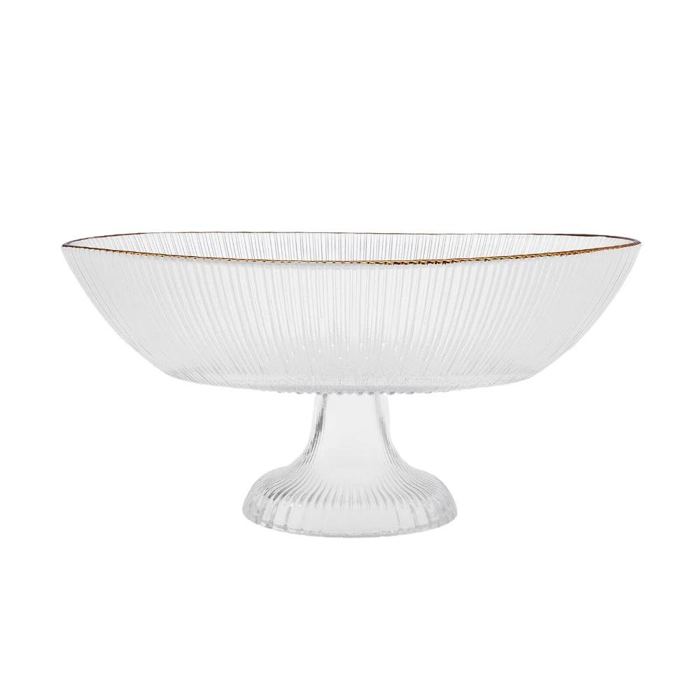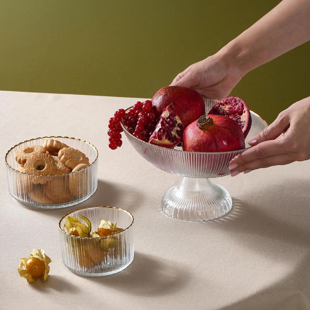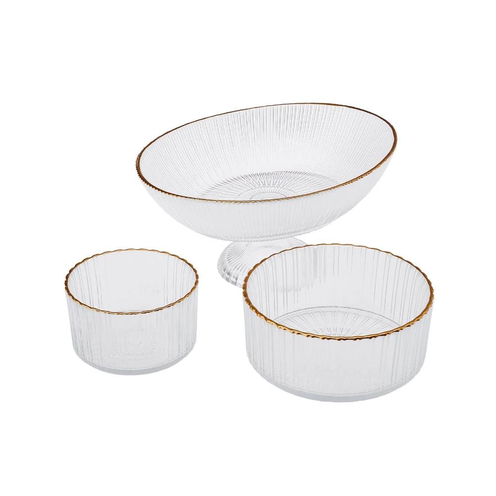 Karaca Pierre 3-Piece Glass Serving Set – Plain Gold Gilded | Elegant Serving Stand
