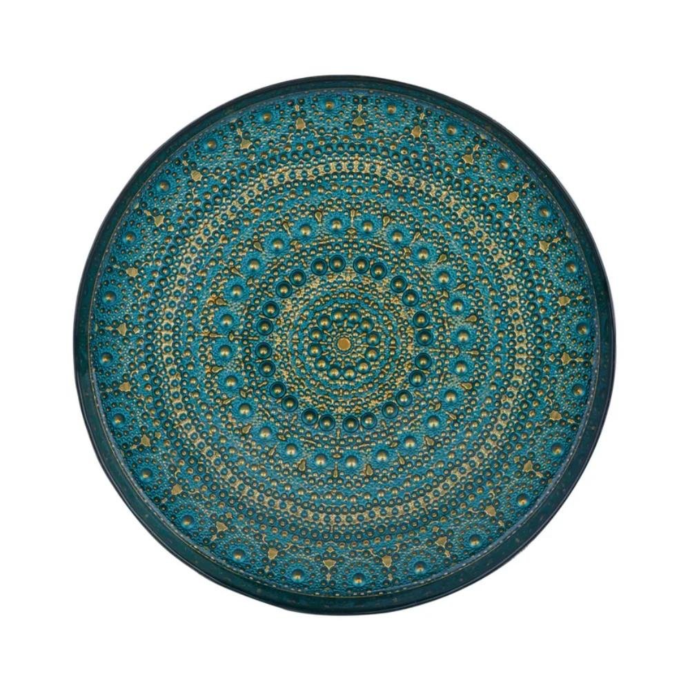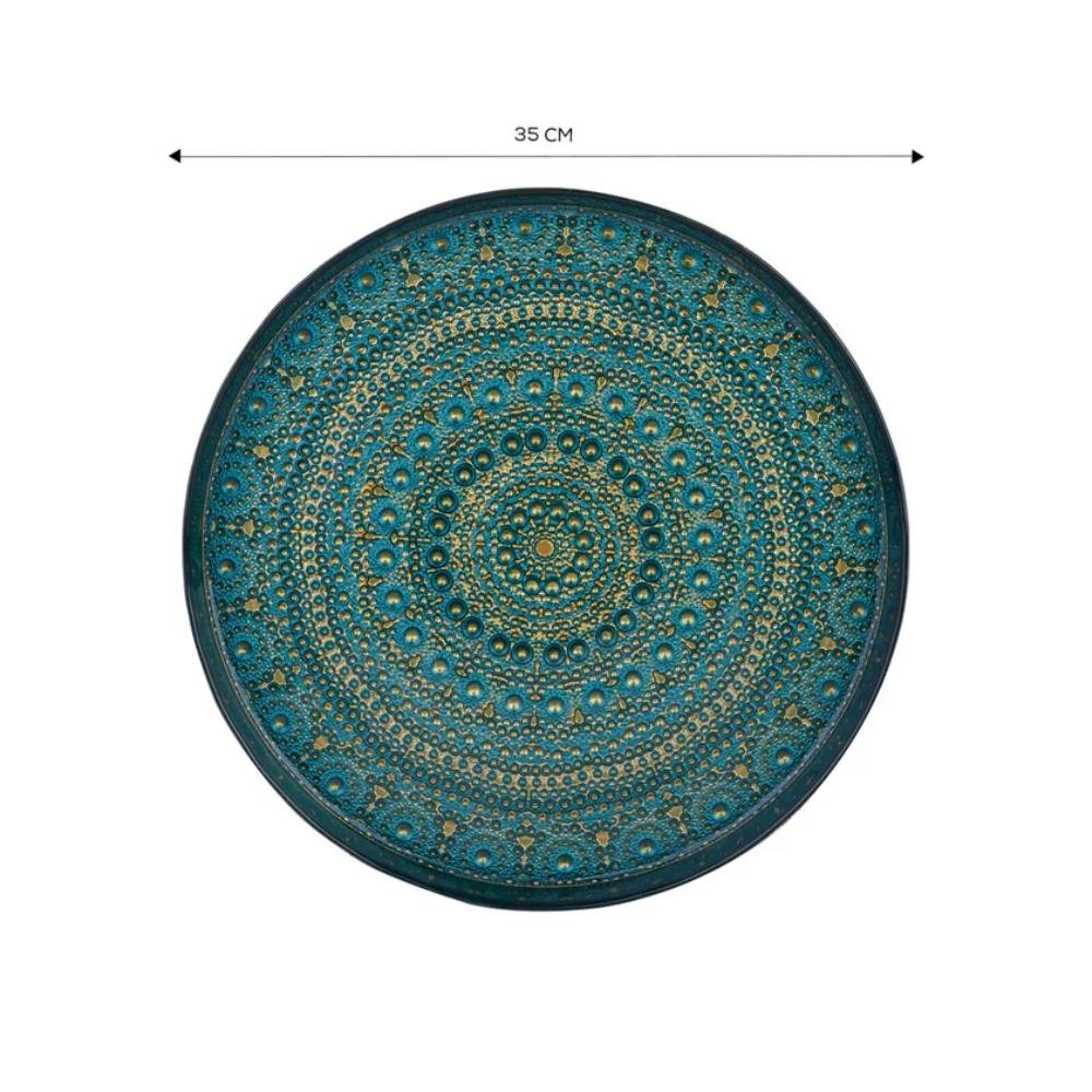 Enhance your interior styling with the Karaca Rashel Glass Decorative Tray. Crafted from premium glass, this elegant piece features a rich petrol-colored patterned design accented with delicate gold details, creating a bold yet sophisticated decorative statement for any space.