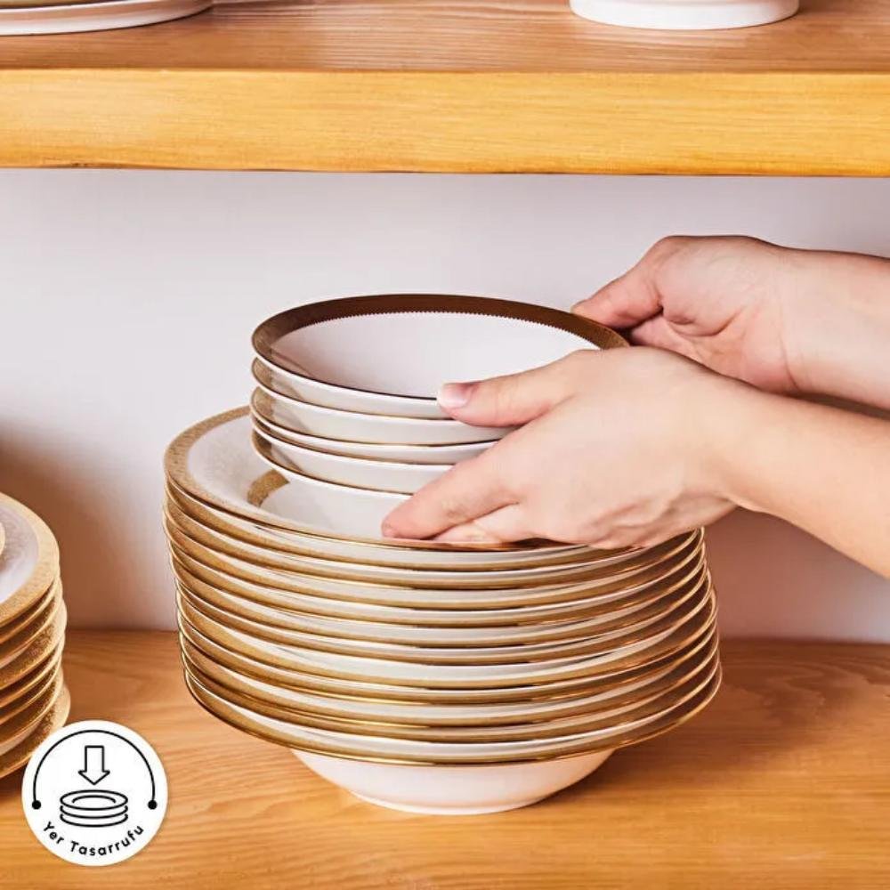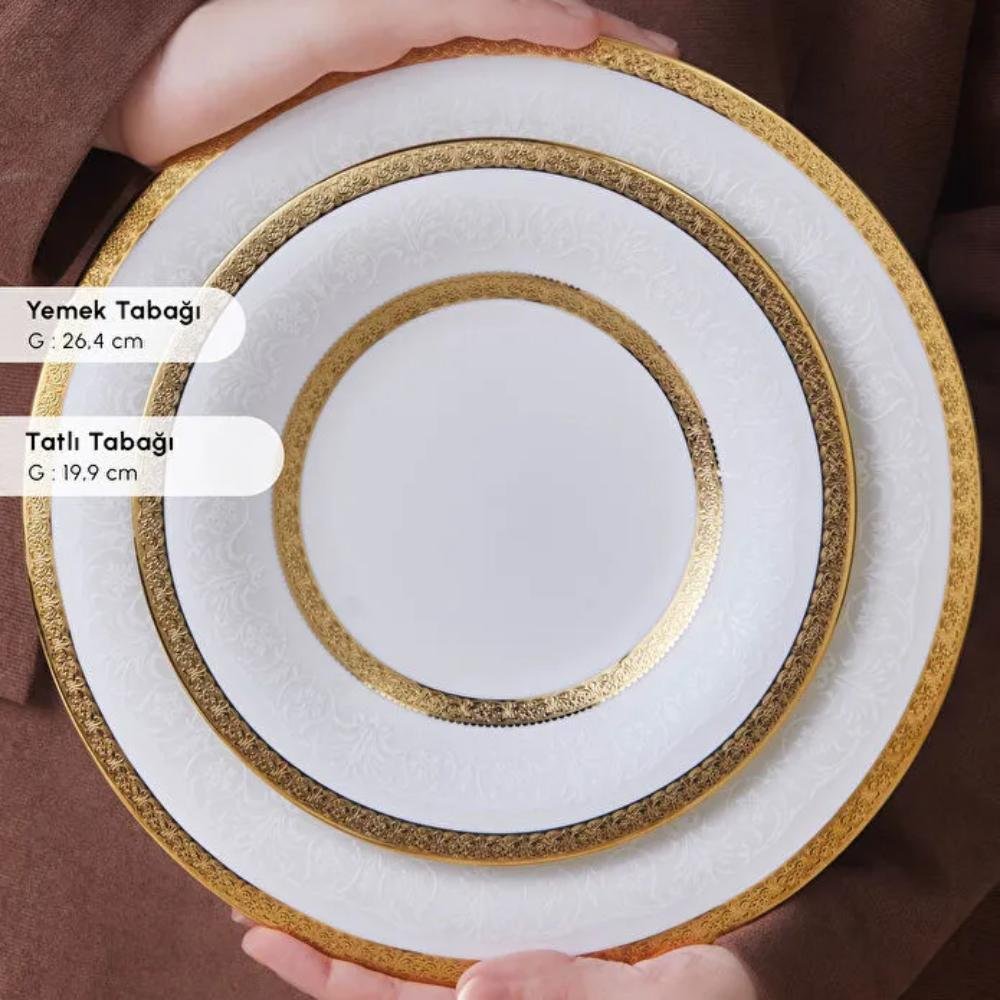 A luxurious dinner set designed to bring timeless elegance to your table. Featuring a refined white bone porcelain body enhanced with delicate gold gilded rims, it combines sophisticated design with durable craftsmanship for an elevated dining experience.