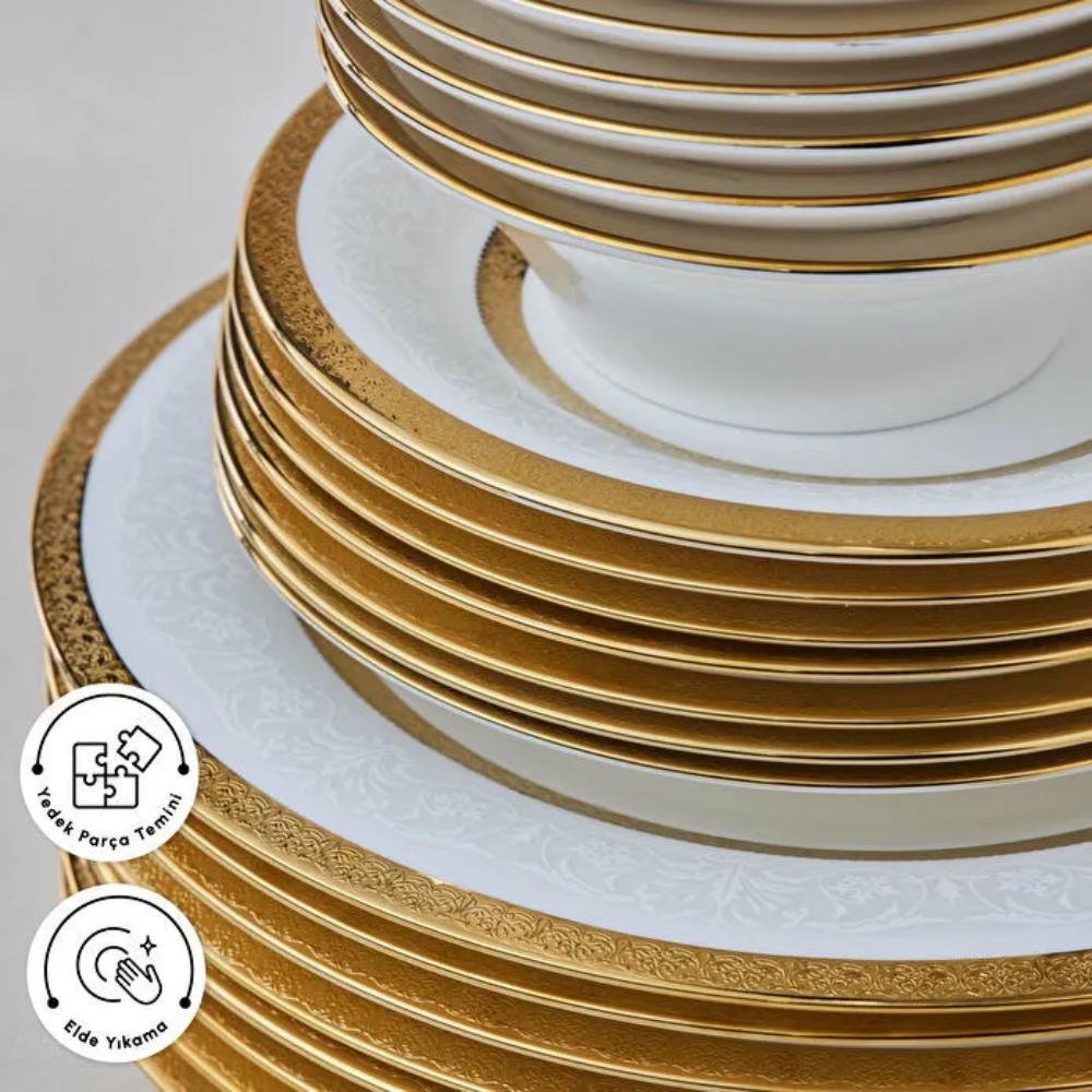 Karaca Royal Bone Victoria 55-Piece Dinner Set for 12 People – White with Gold Gilded Rim