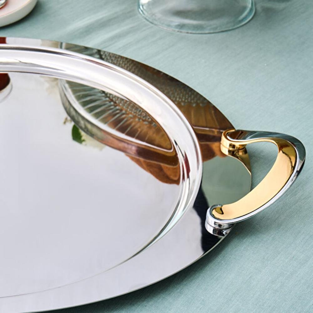 Serve with elegance using the Karaca Serra Round Steel Tray, designed for both durability and refined presentation.