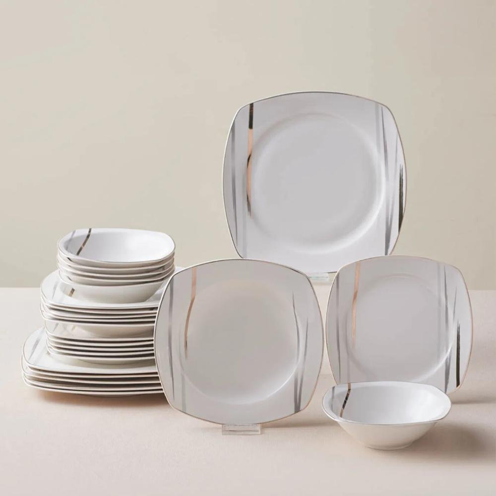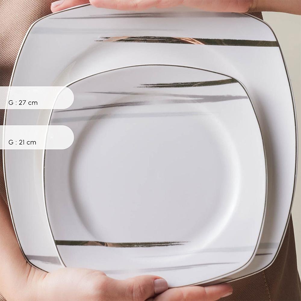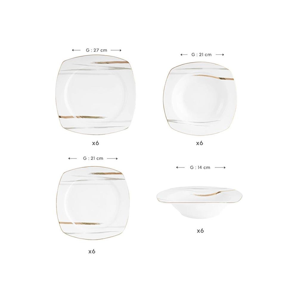 Karaca Square Bone Bera 24-Piece Dinner Set for 6 People, 8683650361664