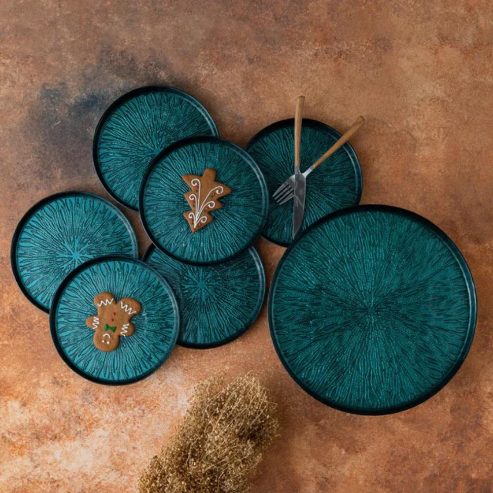 Karaca Teo 7-Piece Glass Cake Stand with Serveware Set for 6 People – Green, 153.03.06.6942
