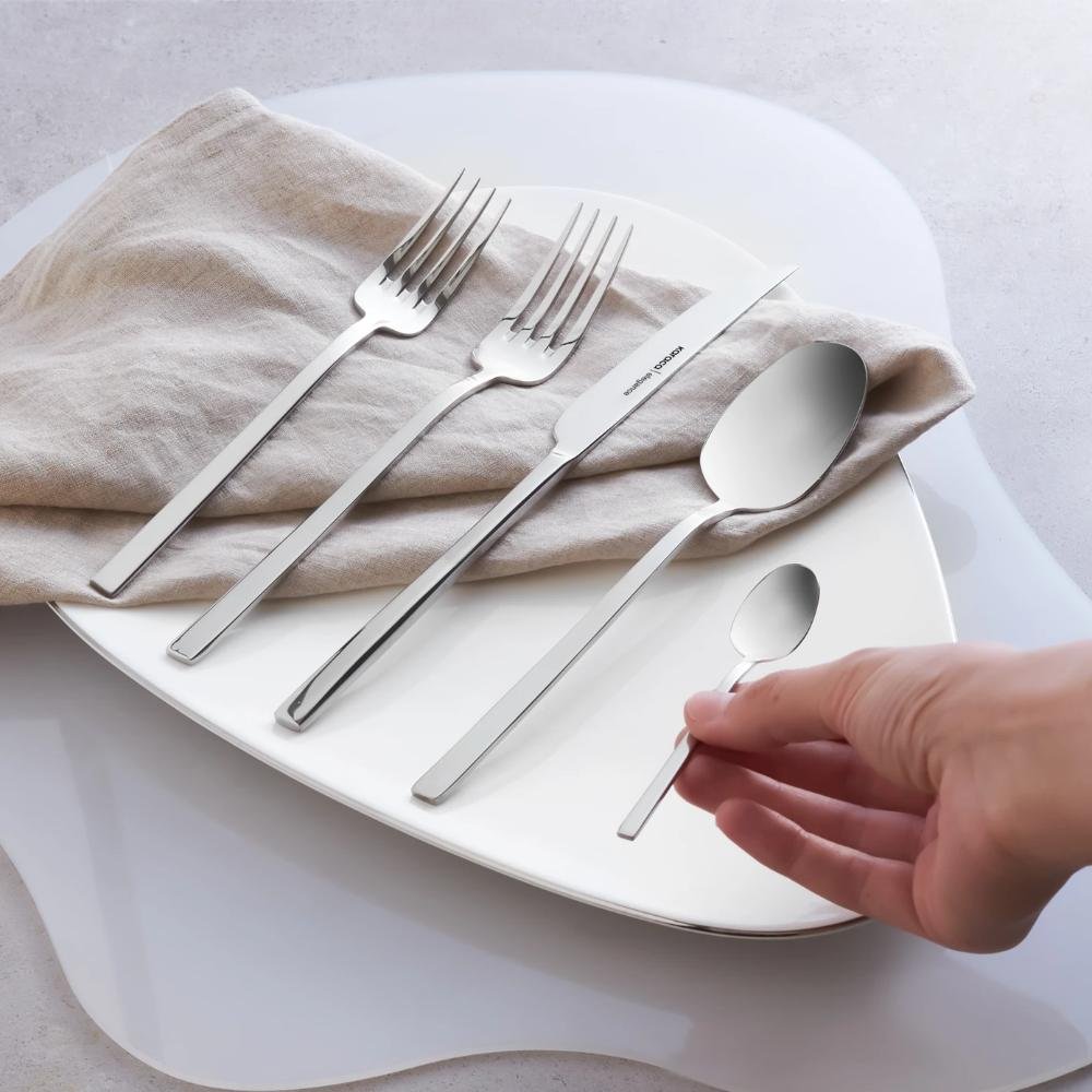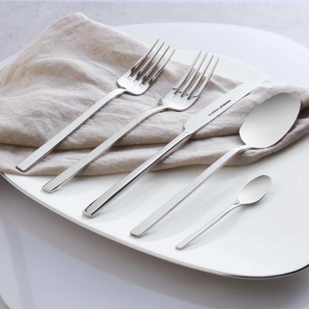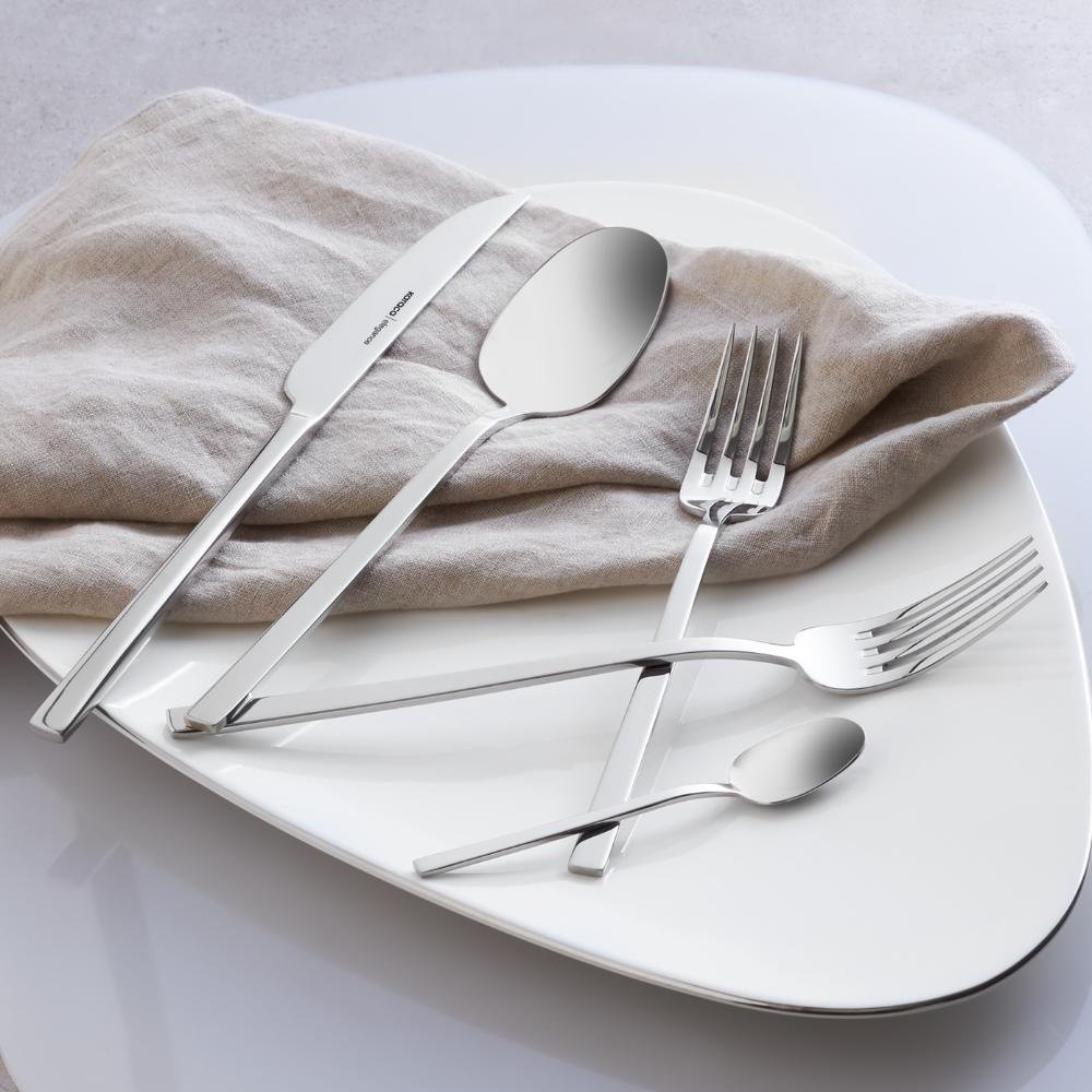 Karaca Elegance New Glacial V2 Platinum 84-Piece Cutlery Set for 12 People, 153.03.08.4824