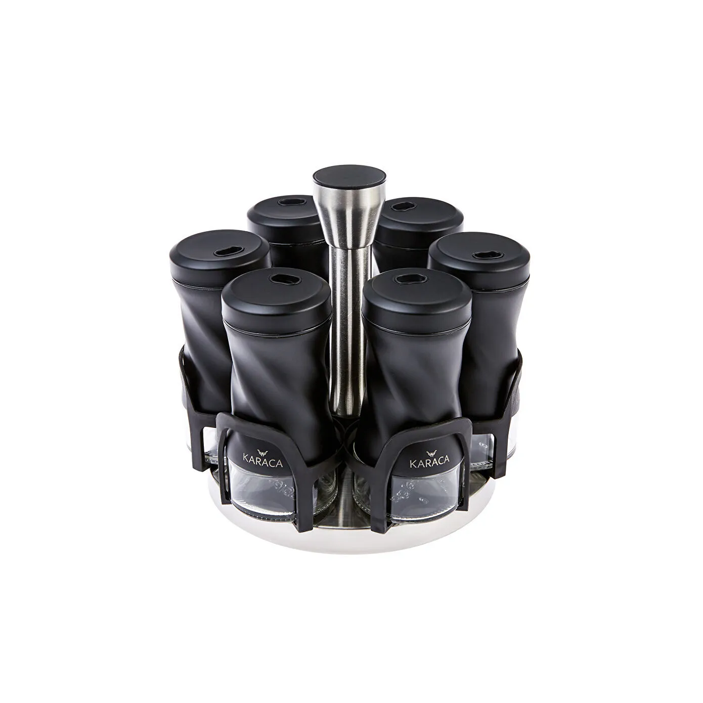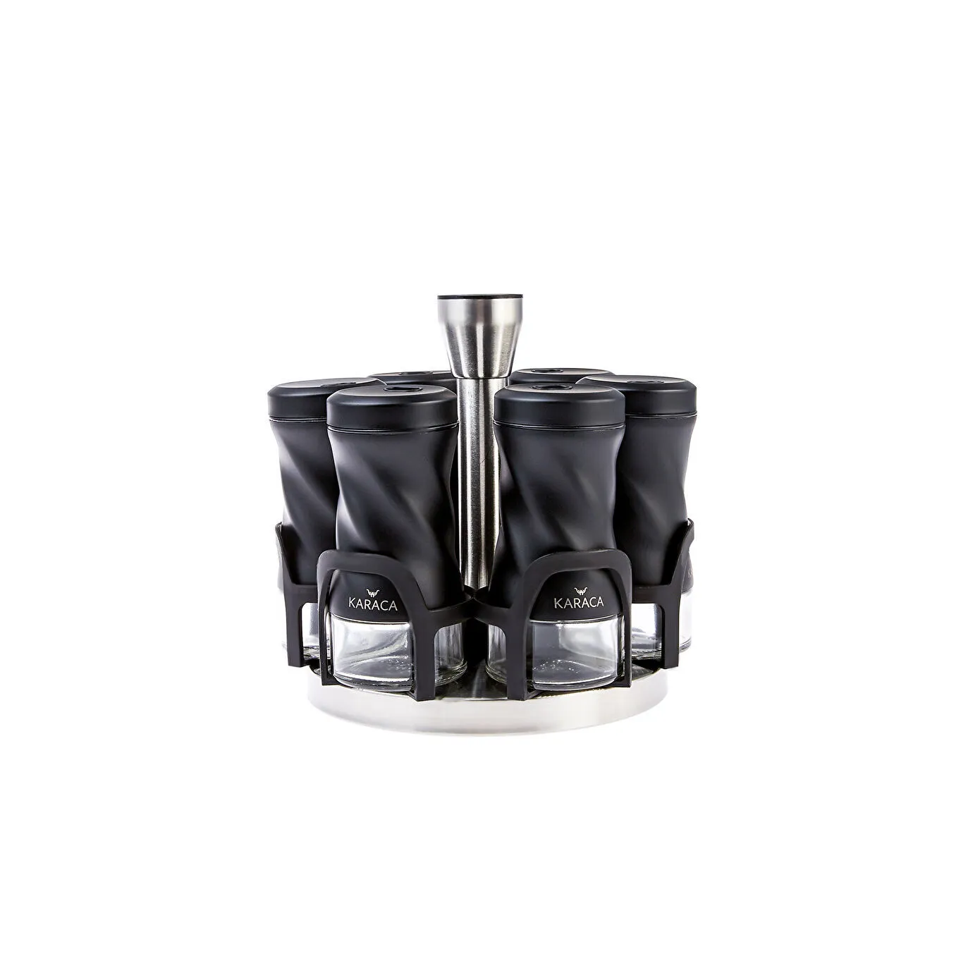 Karaca Tottori 7-Piece Round Glass Spice Set - Black,153.03.06.4744