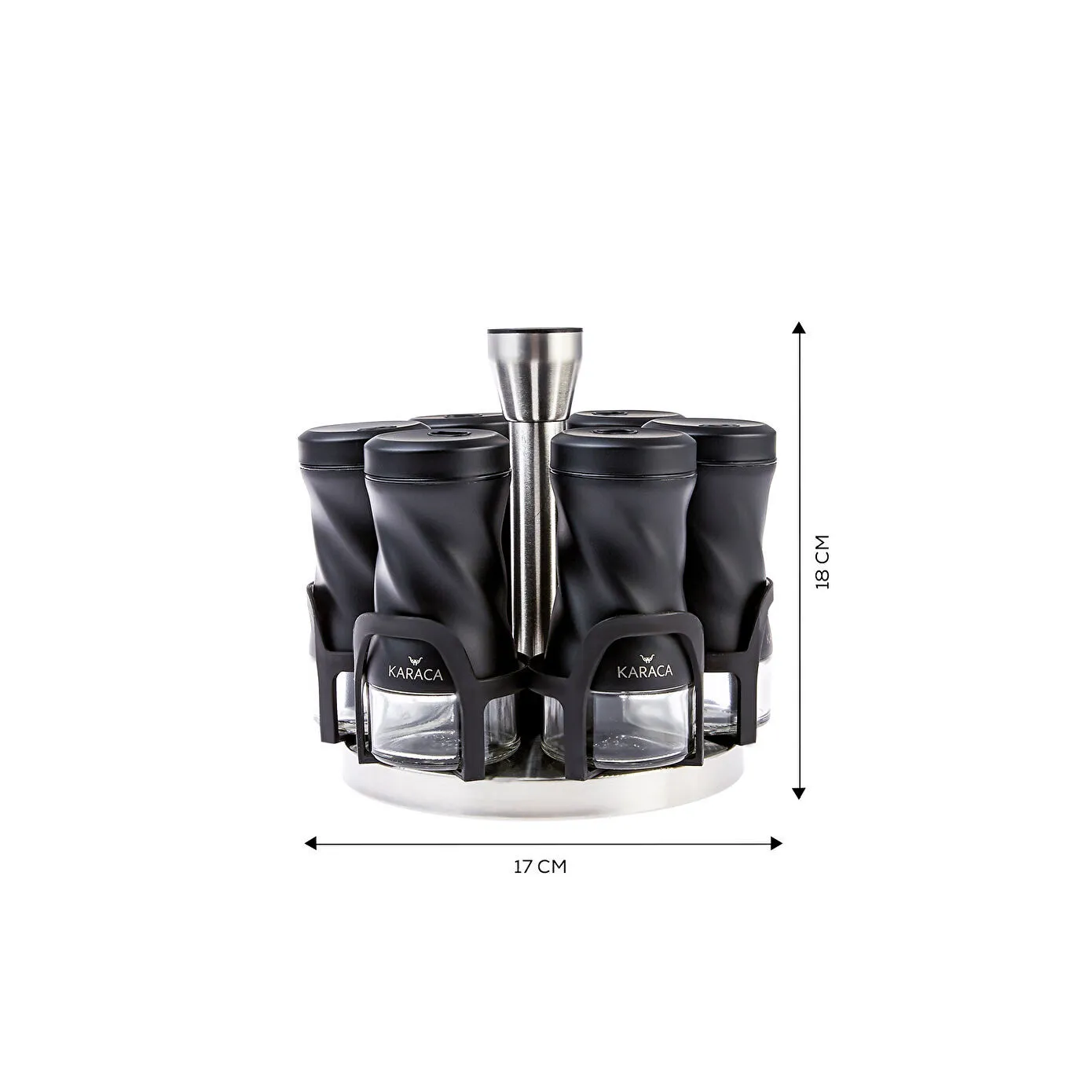 Karaca Tottori 7-Piece Round Glass Spice Set – Black,153.03.06.4744